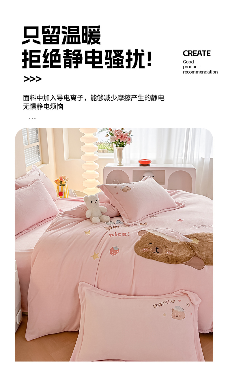 - - 2024新款卡通婴儿级牛奶绒四件套