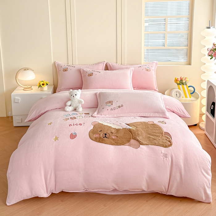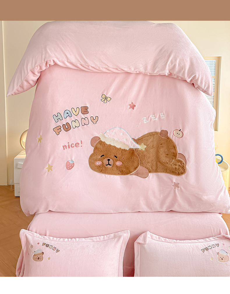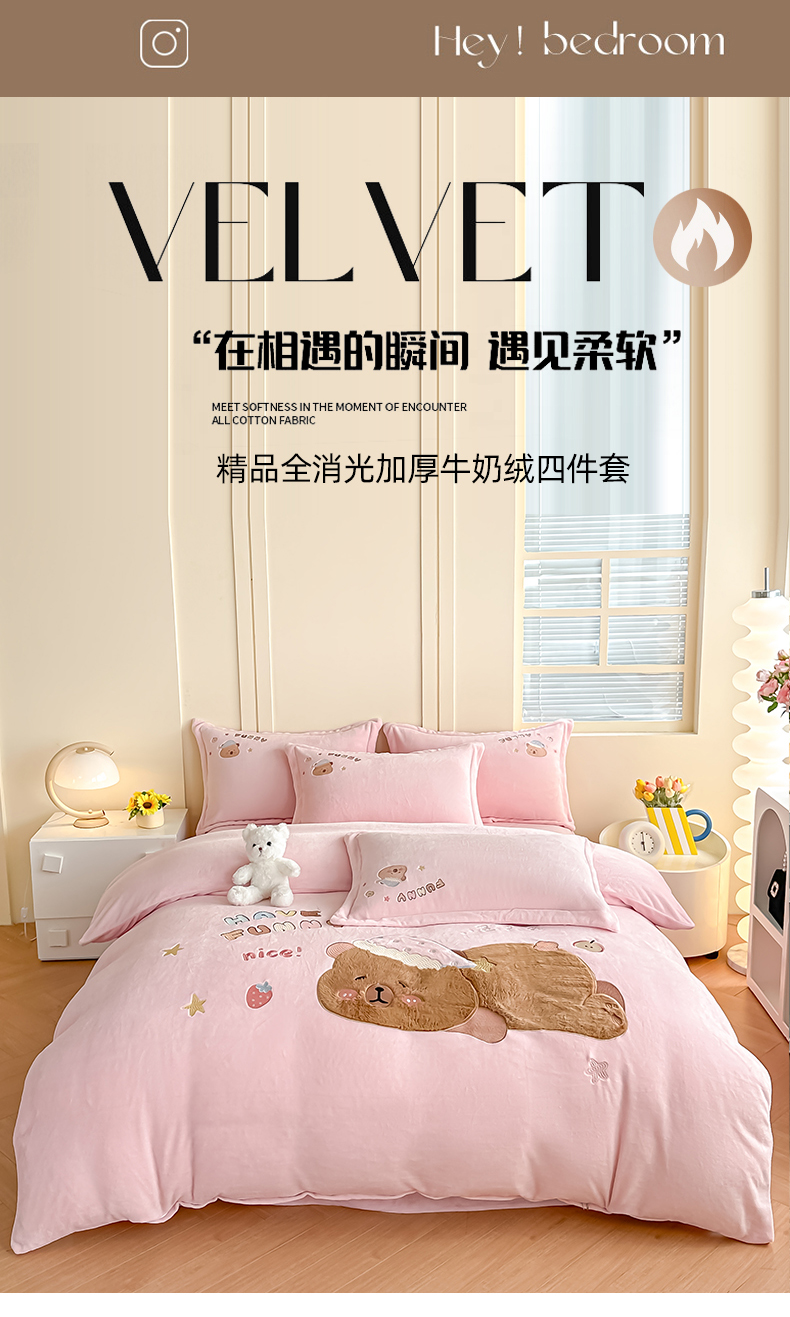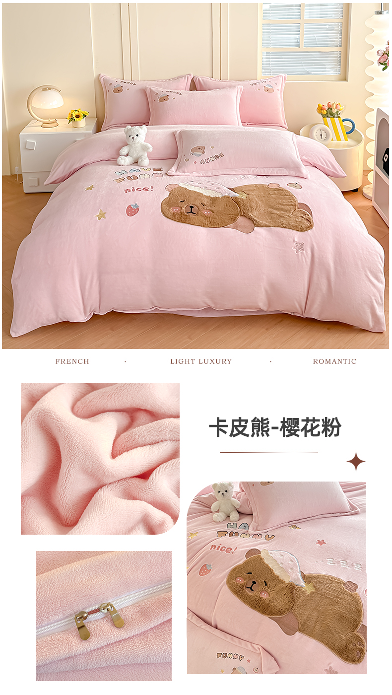 - - 2025新款全消光加厚牛奶绒四件套-卡皮熊